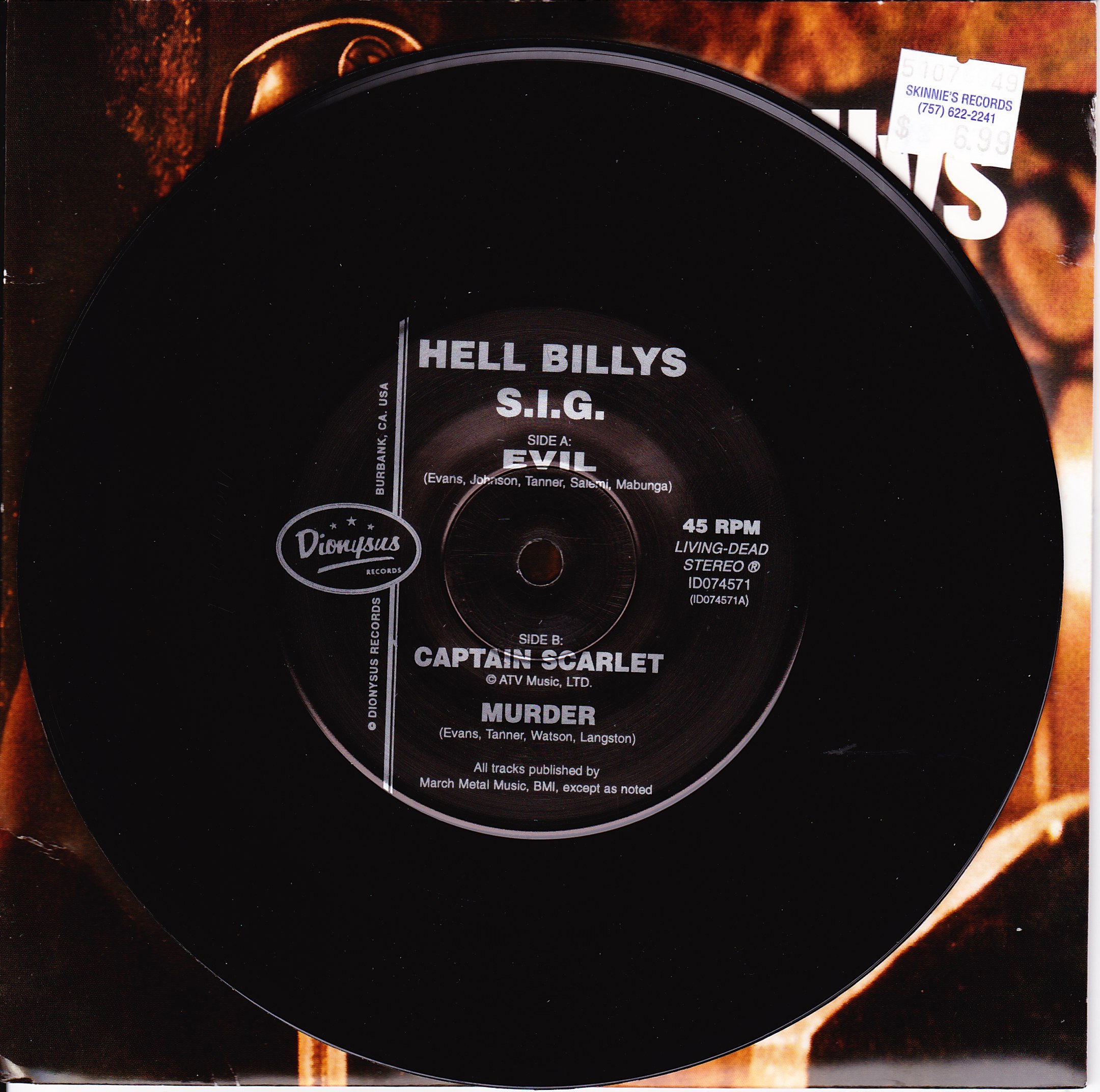 Evil is the final 7” single by the original American psychobilly band HellBillys. Fronted by vocalist Barrie Evans, the band consists of Greg Langston (drums), Rick Tanner (bass), and Dan Watson (guitar, formerly of progressive thrash metal band Hexx).