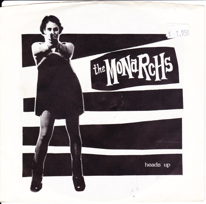 Released on Estrus Records in 1995, the Heads Up EP by The Monarchs is a rudimentary garage rock romp. The Ann Arbor, Michigan 4-piece consisted of Sarah McCabe, Tommy Oliver, Greg Hughes, and Andrew Claydon.